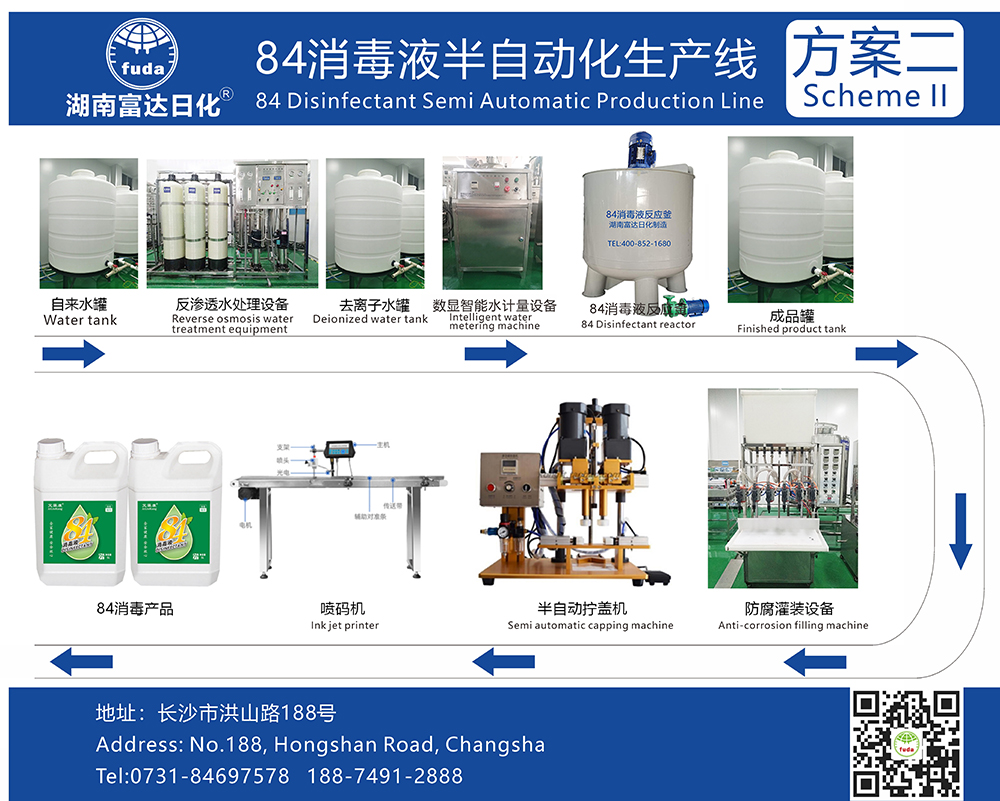 購買一噸原料正常價(jià)格600元左右,其中去離子水用量接近50%,每斤散裝84消毒液成本0.15左右。設(shè)備成本可參考上方生產(chǎn)線,詳情可通過最下方聯(lián)系方式咨詢!