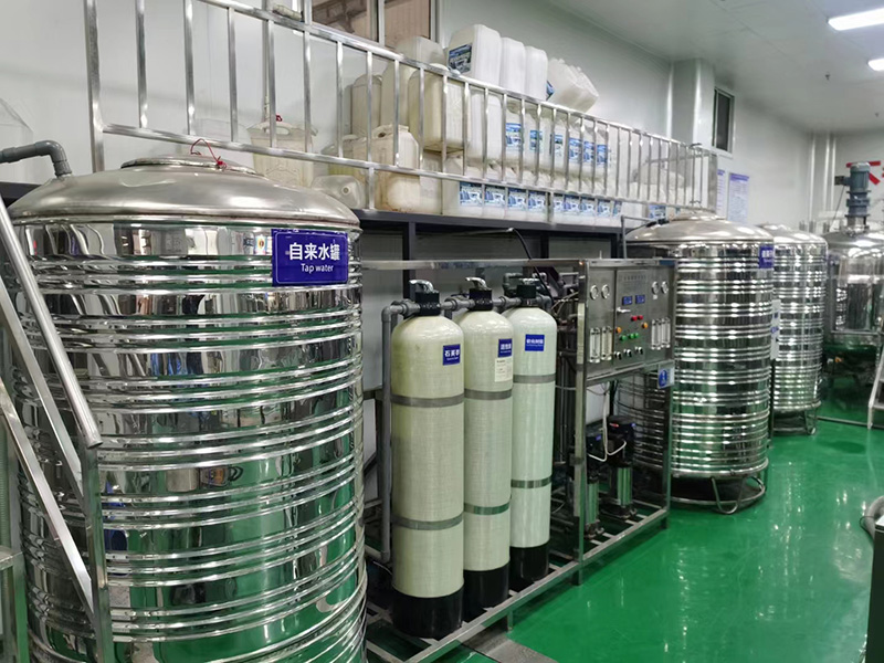 1. 水:生產(chǎn)洗衣液所用的水是由水處理設(shè)備處理后的純凈水生產(chǎn)出來(lái)的。普通水生產(chǎn)的洗衣液會(huì)降低透明度和保質(zhì)期很多,所以要生產(chǎn)出高質(zhì)量的洗衣液,水處理設(shè)備是第一件設(shè)備。用純凈水生產(chǎn)的洗衣液和洗潔精會(huì)透明得多,產(chǎn)品質(zhì)量也會(huì)比直接用自來(lái)水生產(chǎn)的產(chǎn)品高。