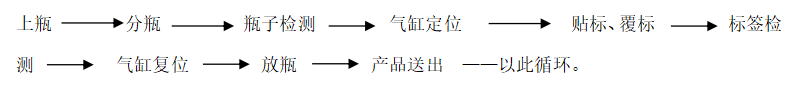 6, 上端分瓶機(jī)構(gòu)放一個瓶子——依上循環(huán)連續(xù)貼標(biāo)。